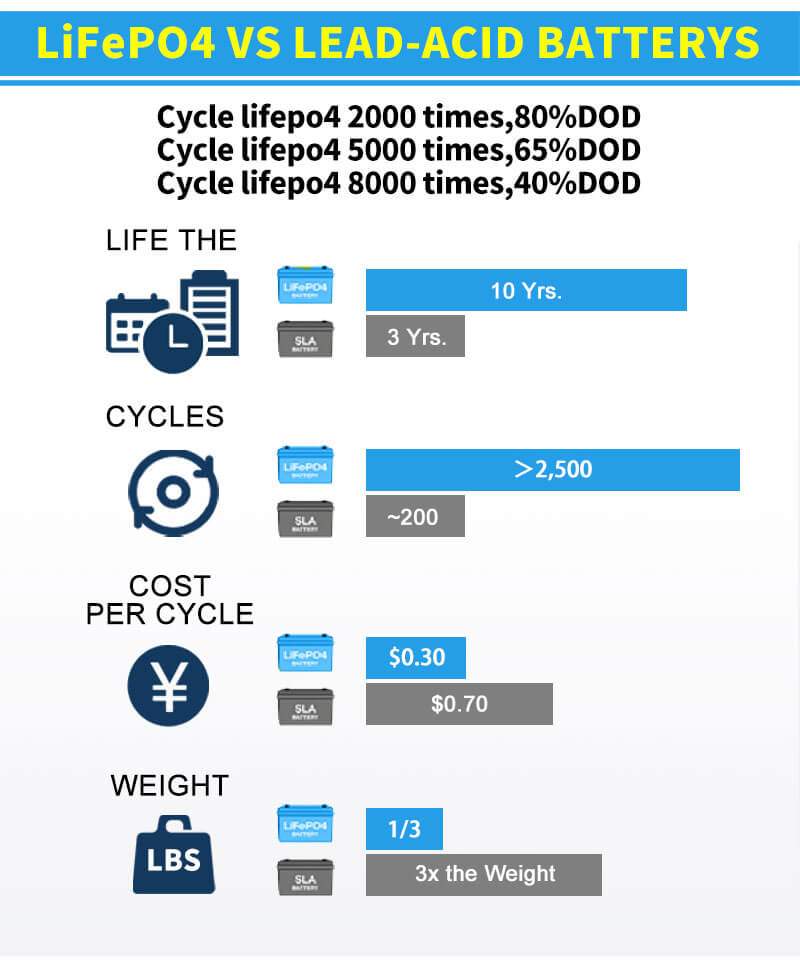 Life Jiyana Çerxê ya Dirêjtir: Ji batarya asîdê heya 20 carî dirêjtir jiyan û pênc carî jîyana float / salnameyê pêşkêşî dike, dibe alîkar ku lêçûna veguherînê kêm bikin û lêçûna tevahî ya xwedaniyê kêm bikin